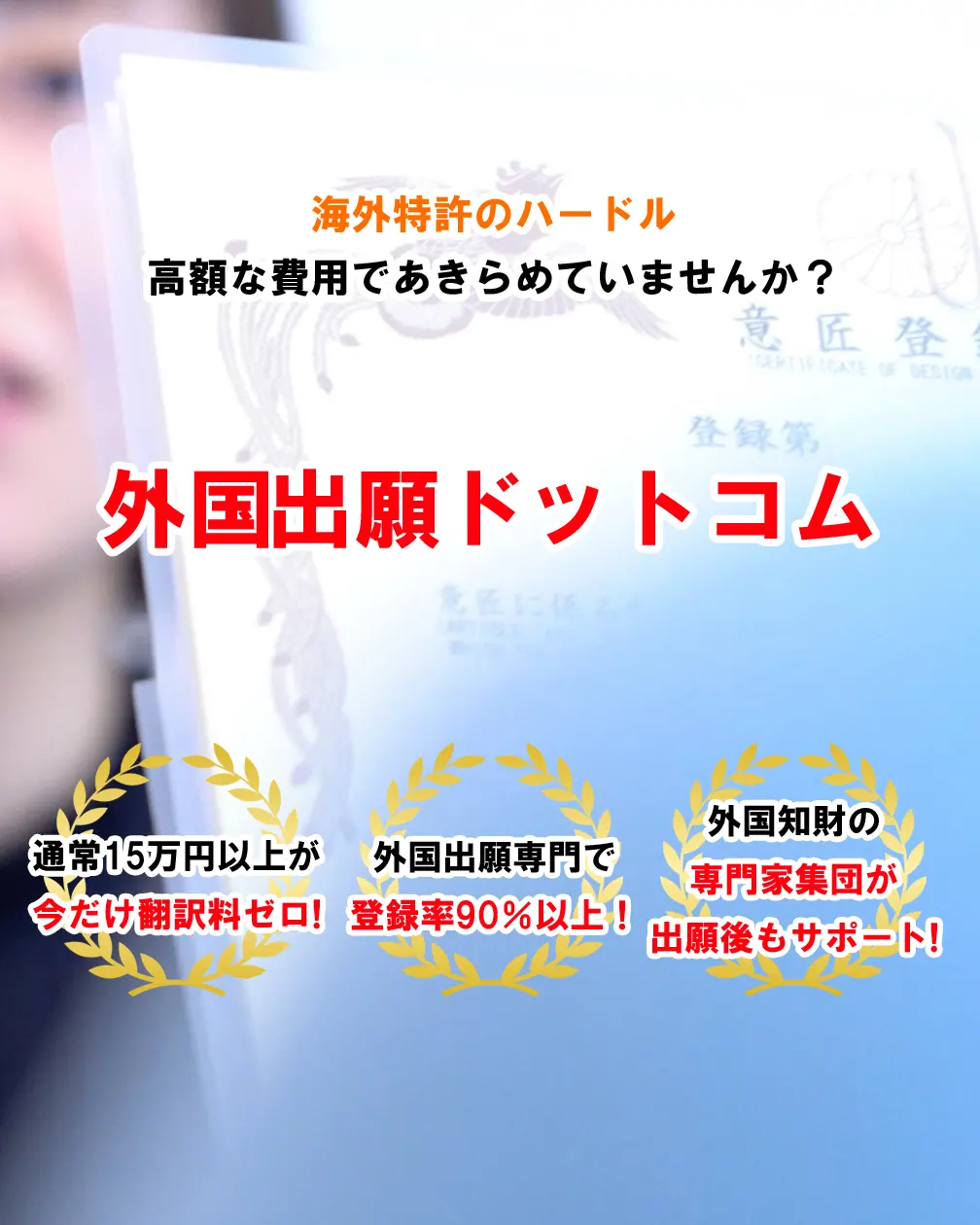 現在、外国出願サポートの強化キャンペーンとして、翻訳料を期間限定で無料としています。